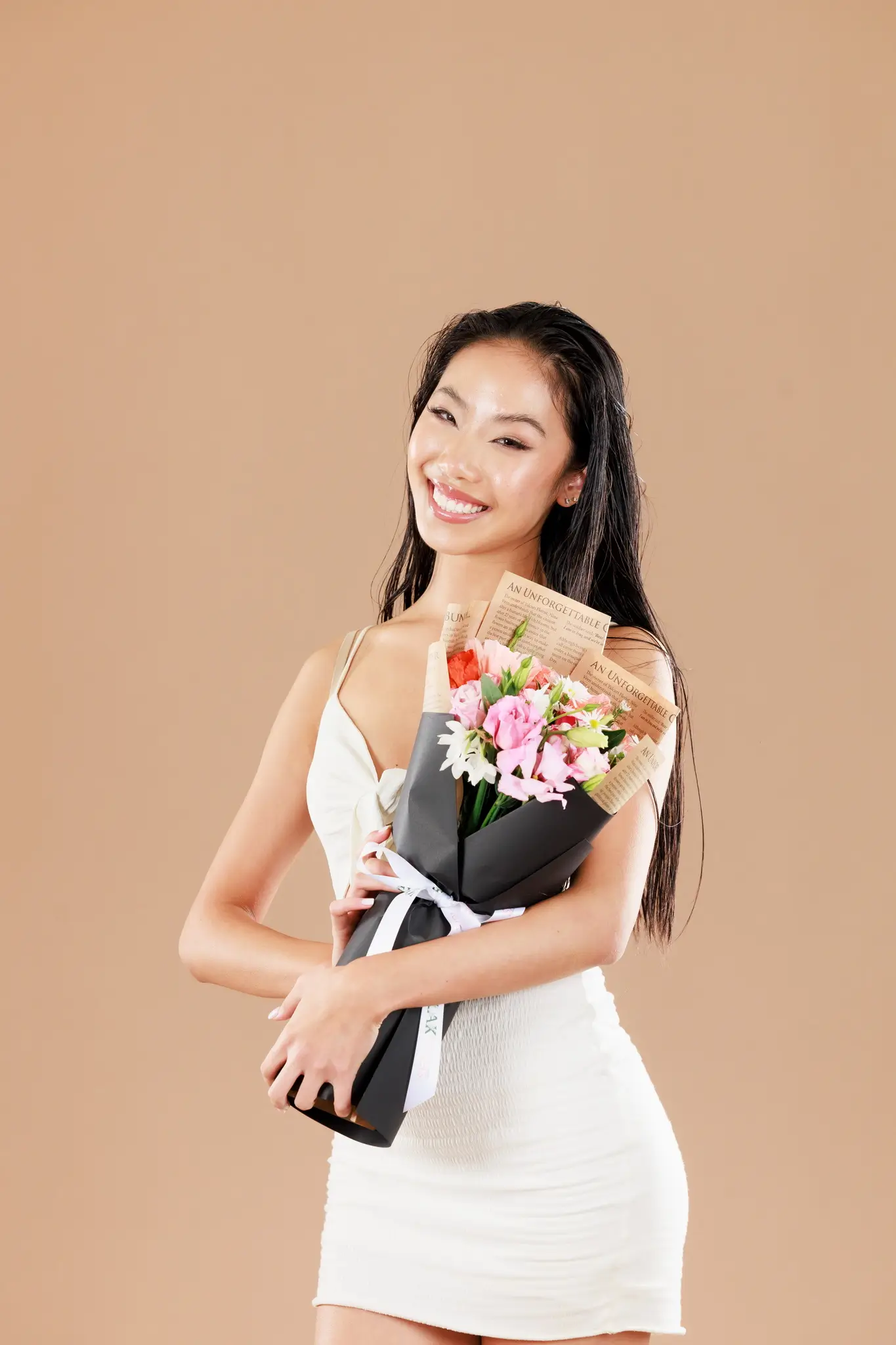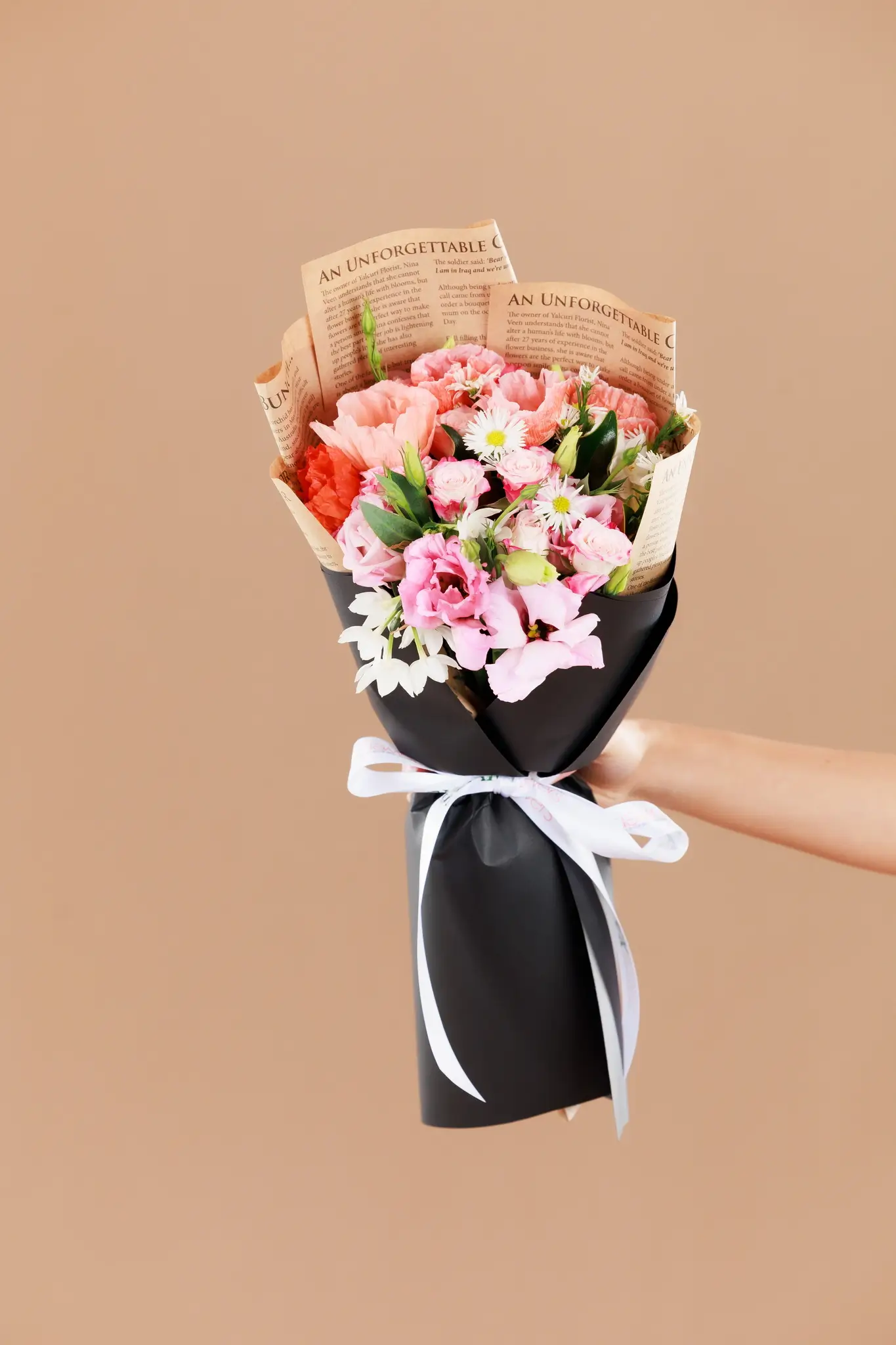 A dainty and delightful array of spray roses, lisianthus, and tulips make up the Petite Fraise bouquet. With lisianthus meaning admiration, and tulips for unconditional love, this darling arrangement is a beautiful gift to show your respect and acceptance to your most cherished ones, whether it’s a special occasion or just because! Flowers: Lisianthus, Spray roses, Tulips,/Poppies (when in season) and small daisies